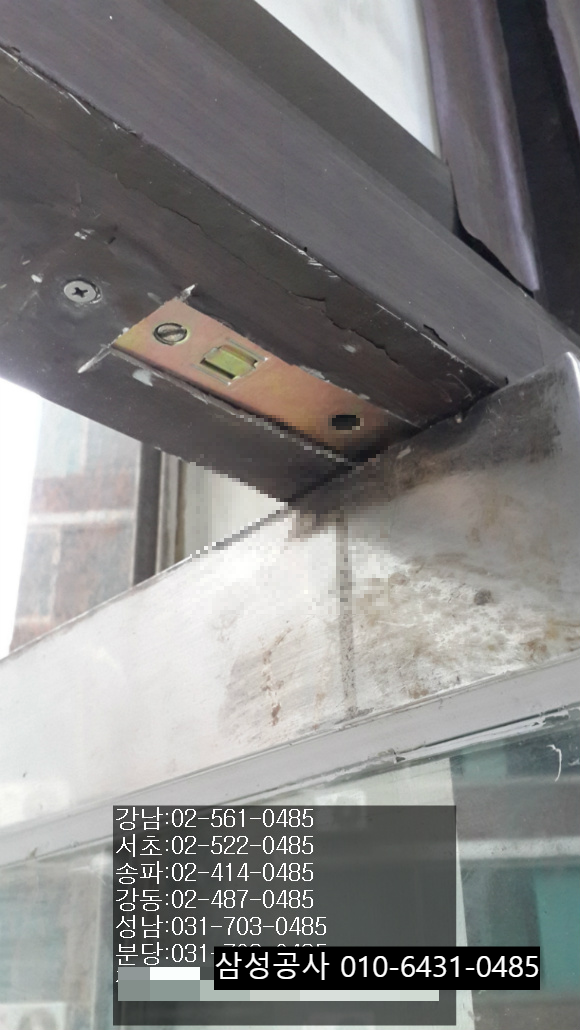 서초동의 강화유리문을 통해서 잠기지 않고 벌어지는 유리문수리에