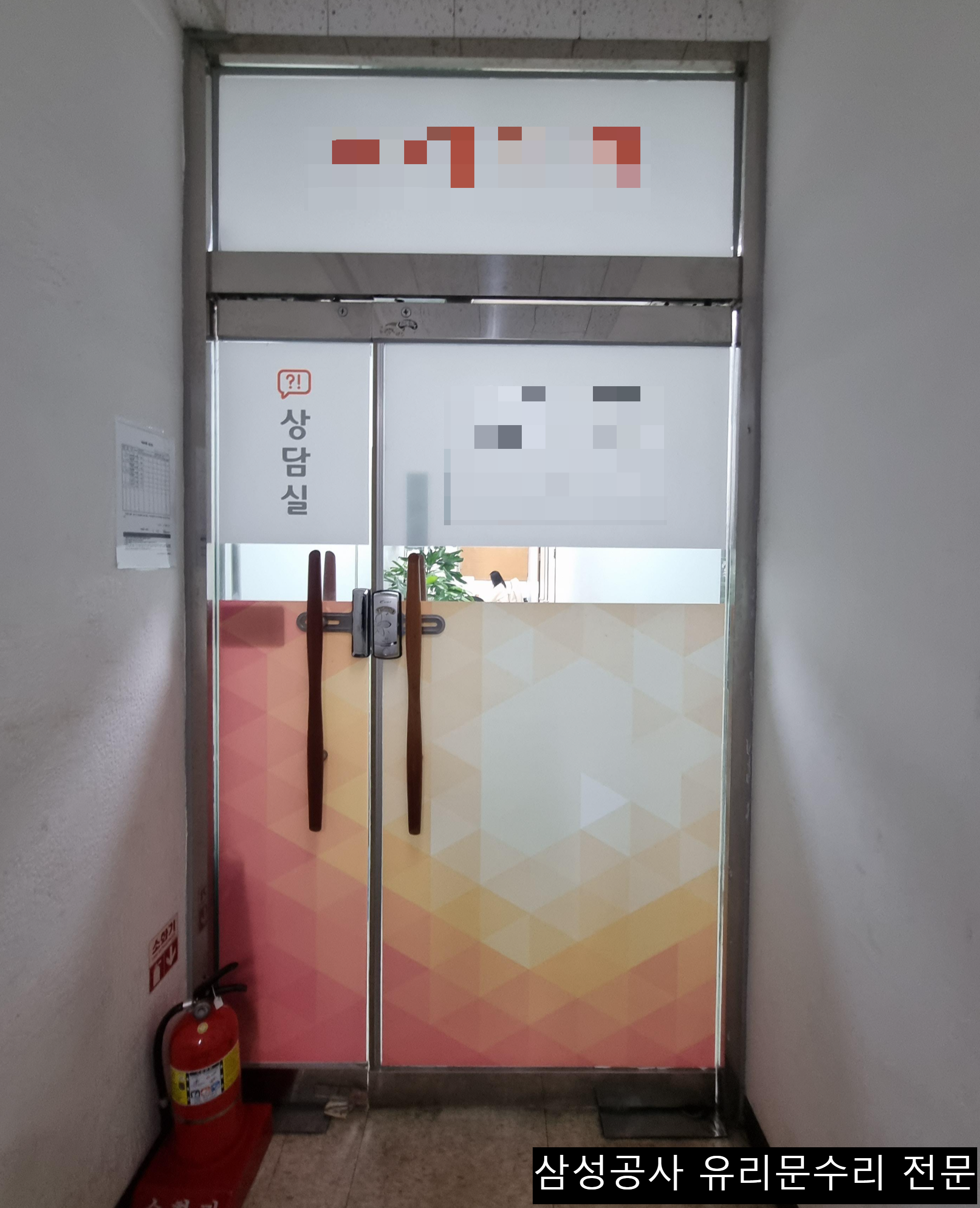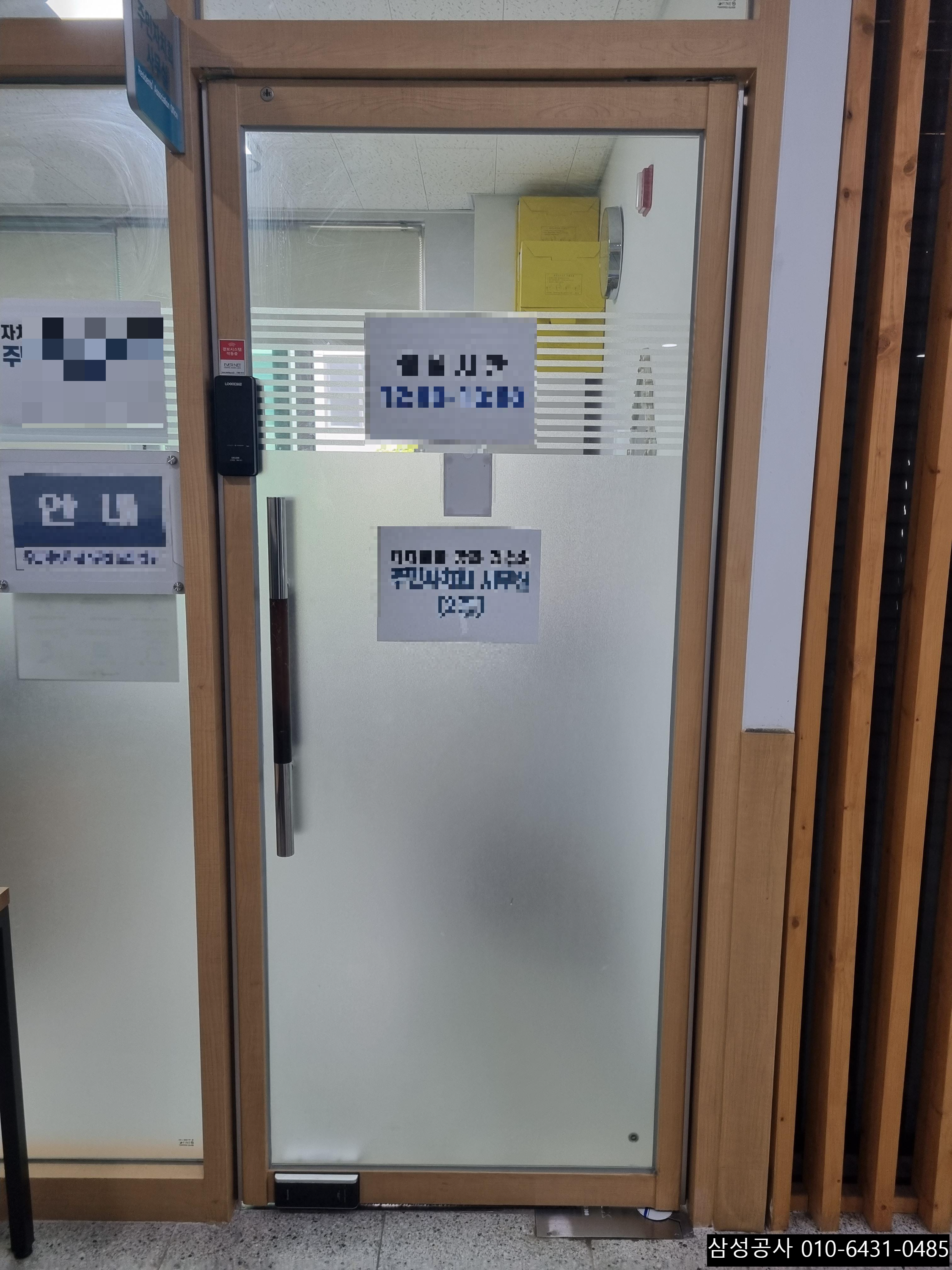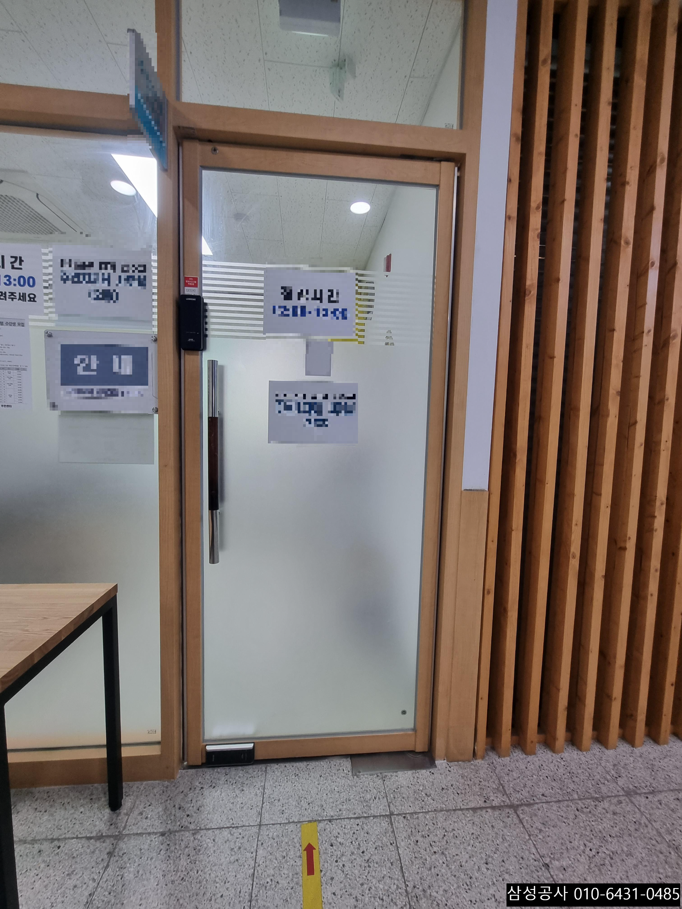 아무래도 외부로 통하는 복도 출입문이 근처에 있어서 유리문이 너무 뜨면 겨울에 추울것 같아 안으로만 열기고 협의후 진행되었습니다.